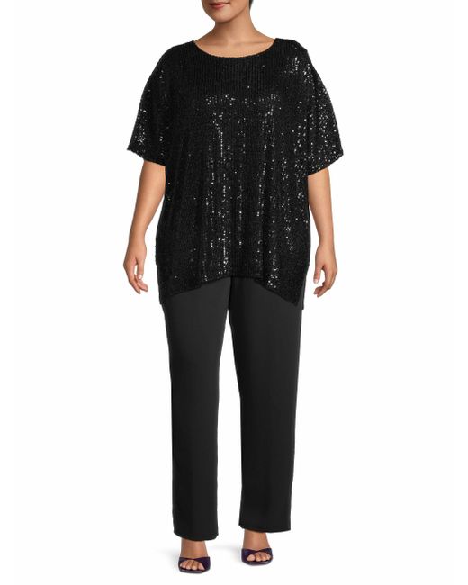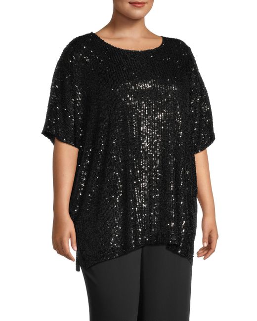 From the All Dressed Up Collection. This easy-fitting caftan-style top by Caroline Rose is crafted of sparkling sequin knit. The body is lined in a feather-weight stretch knit. Jewel neck Short sleeves Pulls over Vented hem 85% nylon/ 15% spandex Lining: 100% polyester Dry clean only Made in USA Generous fit SIZE & FIT Generous fit About 30" from shoulder to hem. Salon Z - Salon Z Collections > Caroline Rose > Saks Fifth Avenue > Barneys. Caroline Rose. Color: Black. Size: 14.