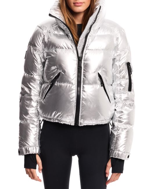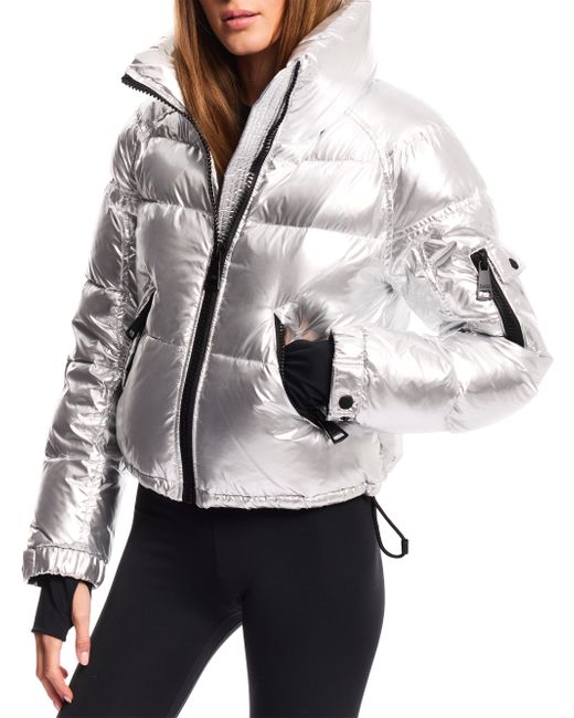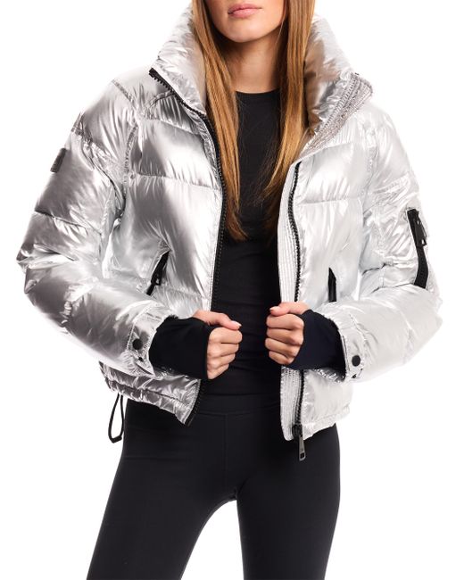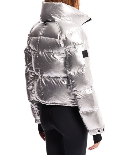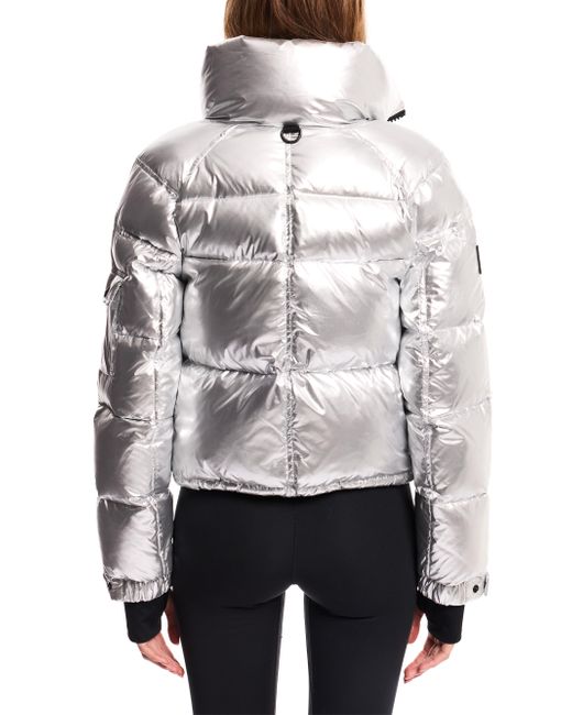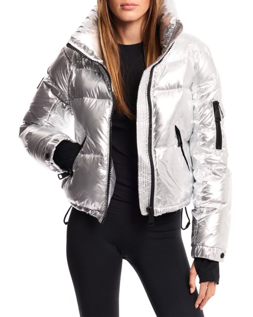 Women's Silver Freestyle Cropped Puffer Jacket Medium