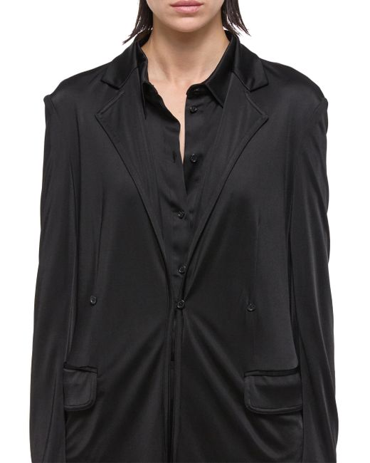 Helmut Lang's jacket is cut in a single-breasted silhouette and styled with notched lapels, side flap pockets, and button-front closure. Notched lapels Long sleeves Side flap pockets Button-front closure 100% viscose Dry clean Imported SIZE & FIT About 28" from shoulder to hem Model measurements: 5'10" tall Model is wearing a US size 4. Contemporary Sportswear - Helmut Lang > Helmut Lang > Saks Fifth Avenue > Barneys. Helmut Lang. Color: Black. Size: XS.
