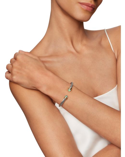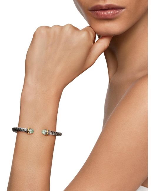 David Yurman's artistic signature, Cable began as a bracelet that he hand-twisted from 50 feet of wire. For the past 30 years, he has evolved the twisted helix into a myriad of designs. Sterling silver and 14-karat yellow gold Bracelet, 5mm Made in Italy SIZE Bracelet, 3mm Extra Small wrist circumference, 5''-5.5'' (12.7-14cm) Small wrist circumference, 5.5''-6.0'' (14-15.2cm) Medium wrist circumference, 6.0''-6.5'' (15.2-16.5cm) Large wrist circumference, 6.5''-7.0'' (16.5-17.8cm) Extra Large wrist circumference, 7.0''-7.5'' (17.8-19cm) Please note: If you are between sizes, please opt for the larger size. Lsd Jewelry - David Yurman > David Yurman > Saks Fifth Avenue > Barneys. David Yurman. Color: Prasiolite. Size: Large.