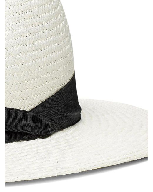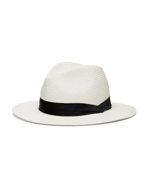 rag & bone's woven straw panama hat features a bold band trim. Brim, about 3" Panama straw Contrast: Viscose/cotton Dry clean Made in Spain ABOUT THE BRAND Founded in 2002, rag & bone founder Marcus Wainwright combined his British heritage with a downtown New York aesthetic. At the heart of the edgy yet laid-back brand is its focus on quality craftsmanship and attention to detail. The epitome of cool, off-duty style, it's no wonder the signature second-skin denim is favored by many. Soft Accessories - Millinery > Rag & Bone > Saks Fifth Avenue > Barneys. rag & bone. Color: White. Size: Small.