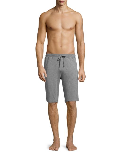 Jogger shorts in a woven construction features a utilitarian drawstring waist. Elasticized drawstring waist Mock fly Pull-on style Side slash pockets Viscose/elastane Machine wash Made in Portugal SIZE & FIT Rise, about 9.5" Inseam, about 12" Leg opening, about 19" Model is wearing a US size Medium. Men Accessories - Loungewear And Pajamas > Hanro > Saks Fifth Avenue > Barneys. Hanro. Color: Deep Navy. Size: Small.