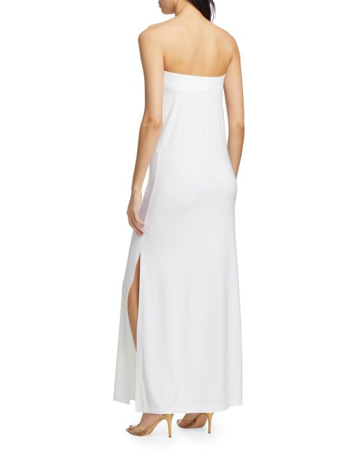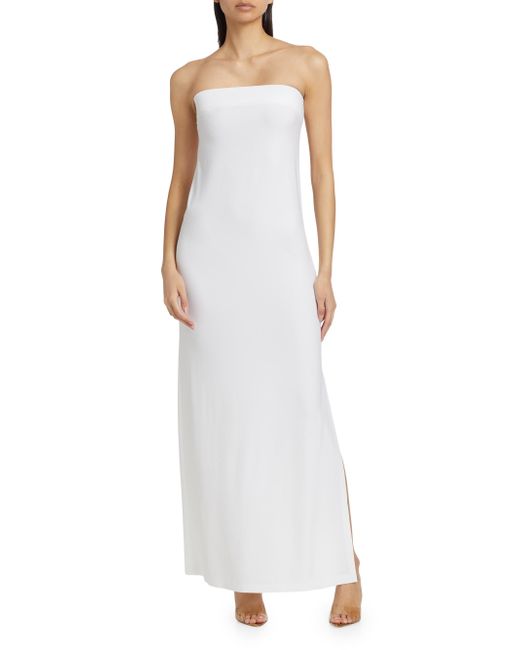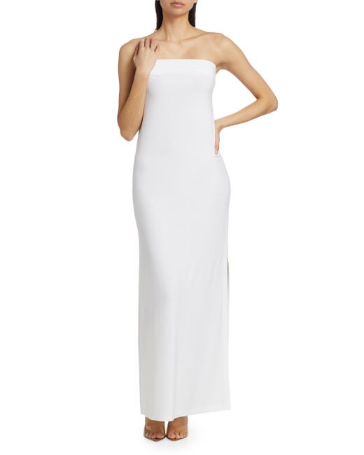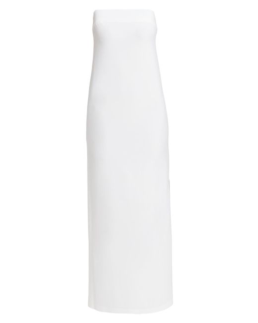 Women's White Strapless Side Slit Column Gown