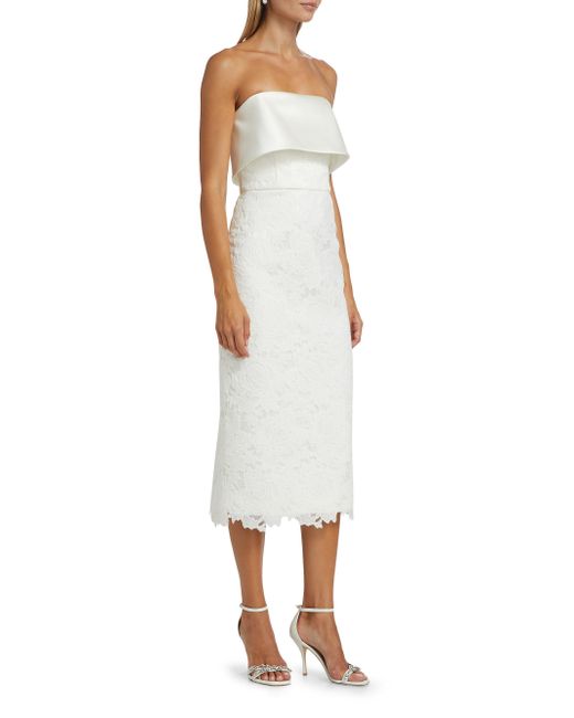 This column midi-dress from Amsale is embellished with floral lace and features a bandeau neckline, scalloped hem, and back zip closure. Bandeau neck Strapless Back zip closure 100% polyester Dry clean Imported SIZE & FIT About 49.5" from shoulder to hem Model measurements: 5'10" tall Model is wearing a US size 4 ABOUT THE BRAND Often recognized as the inventor of the modern wedding dress, Amsale is synonymous with the elegance of today. Founder and designer Amsale Aberra was born in Ethiopia, went on to graduate from FIT and began her career in her family's garment business. Veering toward the classic and away from trends, the brand has evolved to deliver timeless and impeccable gowns for the most memorable occasions. Dress Collections - Modern Evening > Amsale > Saks Fifth Avenue > Barneys. Amsale. Color: Ivory. Size: 0.
