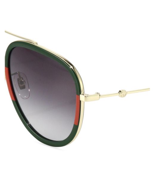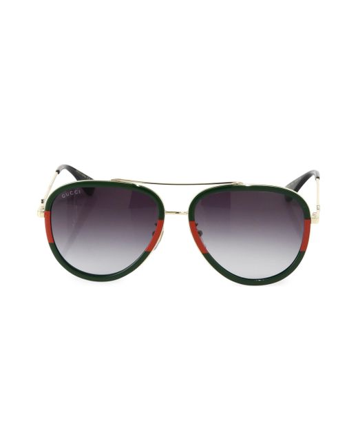 Unique, two-tone design in classic aviators 57mm lens width; 17mm bridge width; 140mm temple length Gradient lenses 100% UV protection Case and cleaning cloth included Metal/acetate Imported ABOUT THE BRAND First launched in 1921, the Italian luxury fashion house quickly became known for its fine leather craftsmanship and accessories. Today, the visionary brand continues to redefine fashion trends, while celebrating creativity and innovation. Gucci's contemporary designs include shoes, clothing and accessories-often boasting the distinctive Horsebit motif. Soft Accessories - Sunglasses > Gucci > Saks Fifth Avenue > Barneys. Gucci. Color: Gold.
