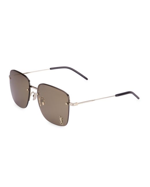 From the Monogram Collection. These half-rim squared sunglasses are constructed from lightweight metal and feature the YSL logo on the lens. 100% UV protection Flash lenses Adjustable nose pads Case and cleaning cloth included Metal Made in Italy SIZE 58mm lens width 17mm bridge width 145mm temple length ABOUT THE BRAND Founded in 1961, Yves Saint Laurent's groundbreaking styles have become iconic cultural and artistic references, and its founder, the couturier Yves Saint Laurent, secured a reputation as one of the twentieth century's foremost designers. Part of the Kering Group, the House kept true to its identity of absolute modernity and fashion authority. Under the creative direction of Anthony Vaccarello, appointed in April 2016, the House offers a broad range of women's and men's ready-to-wear products, leather goods, shoes, jewelry and eyewear. It is also a major force in fragrances and cosmetics. Soft Accessories - Sunglasses > Saint Laurent > Saks Fifth Avenue > Barneys. Saint Laurent. Color: Brown.
