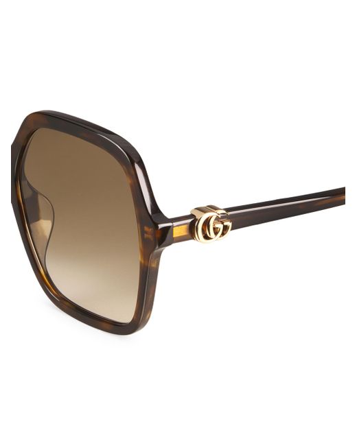 From the Mini Running Collection 56mm lens width; 18mm bridge width; 145mm temple length 100% UV protection Gradient lenses Case and cleaning cloth included Acetate Made in Italy ABOUT THE BRAND First launched in 1921, the Italian luxury fashion house quickly became known for its fine leather craftsmanship and accessories. Today, the visionary brand continues to redefine fashion trends, while celebrating creativity and innovation. Gucci's contemporary designs include shoes, clothing and accessories-often boasting the distinctive Horsebit motif. Soft Accessories - Sunglasses > Gucci > Saks Fifth Avenue > Barneys. Gucci. Color: Havana.
