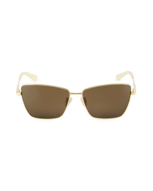 From the Full Metal Collection. Bottega Veneta's metal sunglasses are designed in an architectural rectangle silhouette. The temples feature an interior logo and are finished with tonal nylon tips for a comfortable fit. 100% UVA/UVB protection Case and cleaning cloth included Rectangular lenses Adjustable nose pads Metal/nylon Made in Italy SIZE 59mm lens width 14mm bridge width 140mm temple length ABOUT THE BRAND Founded in 1966, the label known for fine Italian craftsmanship with creativity at its core has since catapulted to cult-level status. The house's storied intrecciato pattern in shoes and handbags, alongside its signature minimalist ready-to-wear, have made the label an editor and It-girl favorite. Soft Accessories - Sunglasses > Bottega Veneta > Saks Fifth Avenue > Barneys. Bottega Veneta. Color: Gold.