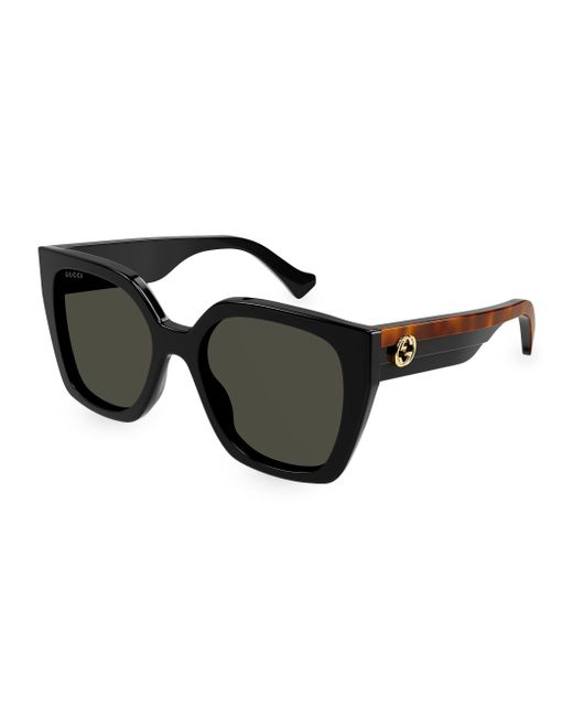 From the Web Studi Collection 55mm lens width; 19mm bridge width; 145mm temple length 100% UV protection Solid lenses Case and cleaning cloth included Acetate/nylon Made in Japan ABOUT THE BRAND First launched in 1921, the Italian luxury fashion house quickly became known for its fine leather craftsmanship and accessories. Today, the visionary brand continues to redefine fashion trends, while celebrating creativity and innovation. Gucci's contemporary designs include shoes, clothing and accessories-often boasting the distinctive Horsebit motif. Soft Accessories - Sunglasses > Gucci > Saks Fifth Avenue > Barneys. Gucci. Color: Black.