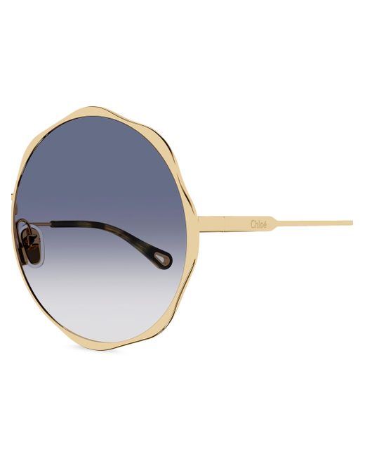 From the Honoré Collection. These Chloé sunglasses feature a round silhouette, scalloped metal frames, and gradient lenses. Engraved logo lettering at the temple finishes the look. 100% UV protection Gradient lenses Adjustable nose pads Case and cleaning cloth included Metal Made in Italy SIZE 59mm lens width 21mm bridge width 140mm temple length ABOUT THE BRAND In 1952, founder Gaby Aghion established Chloé as an alternative to couture and to appeal to the aspirations and empowerment of women. The label is now led by Creative Director Chemena Kamali, who furthers its signature aesthetic of cool, French-girl style. Soft Accessories - Sunglasses > Chloé > Saks Fifth Avenue > Barneys. Chloé. Color: Blue Gradient.
