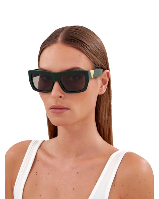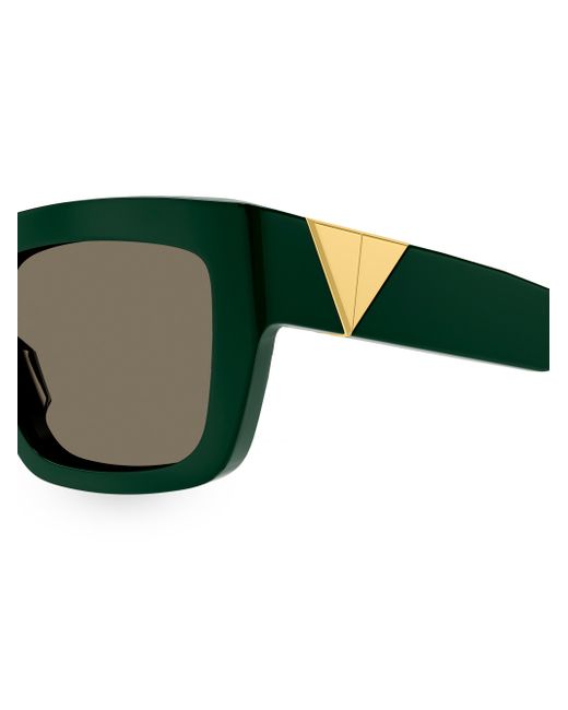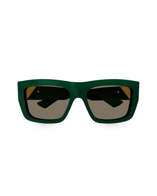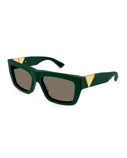 Bottega Veneta's sunglasses are designed in a structured rectangular silhouette. Made in Japan, this bold pair is detailed with signature triangle hardware on the hinges. 100% UV protection Solid lenses Case and cleaning cloth included Acetate/CR 39 Made in Japan SIZE 57mm lens width 17mm bridge width 130mm temple length ABOUT THE BRAND Founded in 1966, the label known for fine Italian craftsmanship with creativity at its core has since catapulted to cult-level status. The house's storied intrecciato pattern in shoes and handbags, alongside its signature minimalist ready-to-wear, have made the label an editor and It-girl favorite. Soft Accessories - Sunglasses > Bottega Veneta > Saks Fifth Avenue > Barneys. Bottega Veneta. Color: Green.