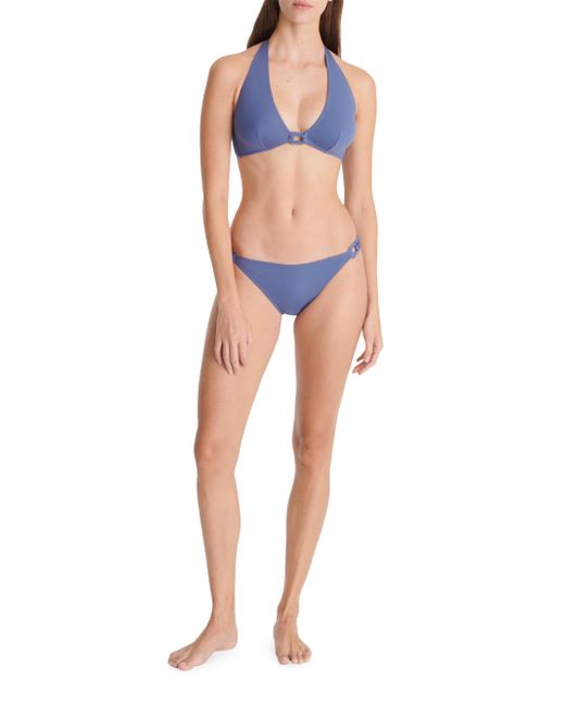 Crafted in France, this Navire triangle bikini top from ERES features an chain-link embellishment at the chest. V-neck Halter tie straps Back clasp 77% polyamide/23% spandex Machine wash Made in France Please note: This item runs small. We recommend ordering one size up. Bikini top sold separately. Outerwear And Swimwear - Eres > Eres > Saks Fifth Avenue > Barneys. ERES. Color: Sirene. Size: 4.