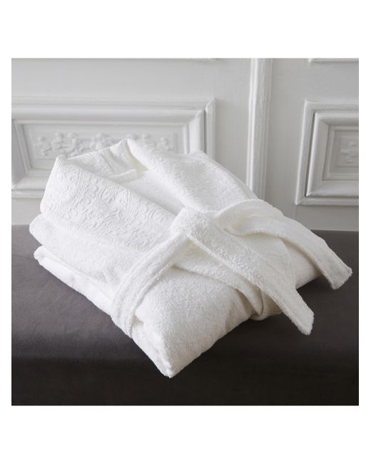 From the Heritage Collection. The Heritage Bathrobe features special jacquard woven lace-like detailing on the shawl collar. It is crafted of luxurious long-staple combed cotton. Shawl collar Long sleeves Self-tie waist 100% long-staple combed cotton Machine wash Made in Portugal. Home - Bed And Bath > Anne De Solène > Saks Fifth Avenue > Barneys. Anne de Solène. Color: White. Size: Small.