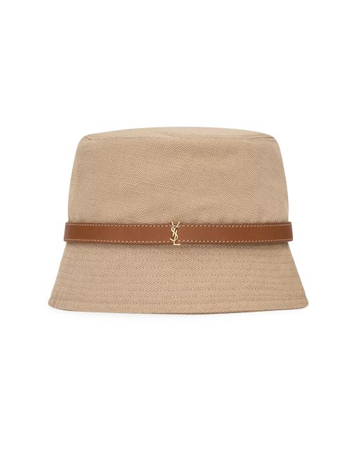 Bucket hat made with organic cotton, featuring a stitched brim and leather band decorated with the cassandre. Cassandre band loop leather sweatband Organic cotton Imported. Lsd Handbags - Saint Laurent > Saint Laurent > Saks Fifth Avenue > Barneys. Saint Laurent. Color: Beige Brown. Size: Medium.