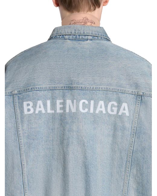 Oversized denim jacket. Selvedge denim This item is unisex Oversized fit 7 button front 2 buttoned pockets at chest 2 slash pockets Buttoned cuffs Adjustable buttoning at waist Balenciaga engraved flex buttons Balenciaga logo printed at back Reflective effect logo Dry cleaning Made in Japan. Lsd Rtw - Balenciaga Rtw > Balenciaga > Saks Fifth Avenue > Barneys. Balenciaga. Color: Blue. Size: Small.