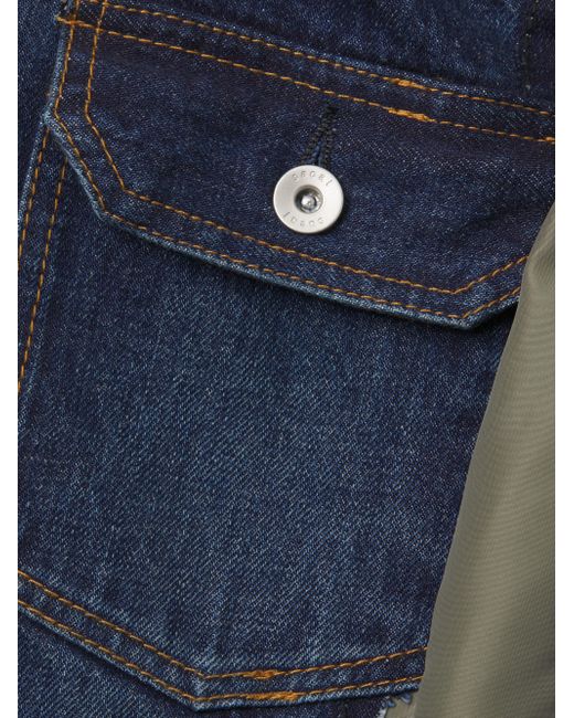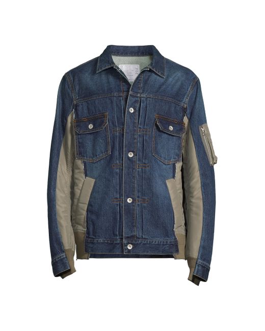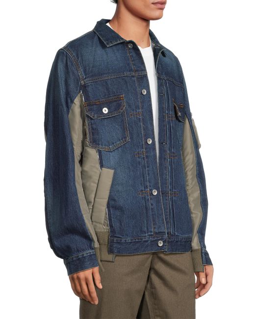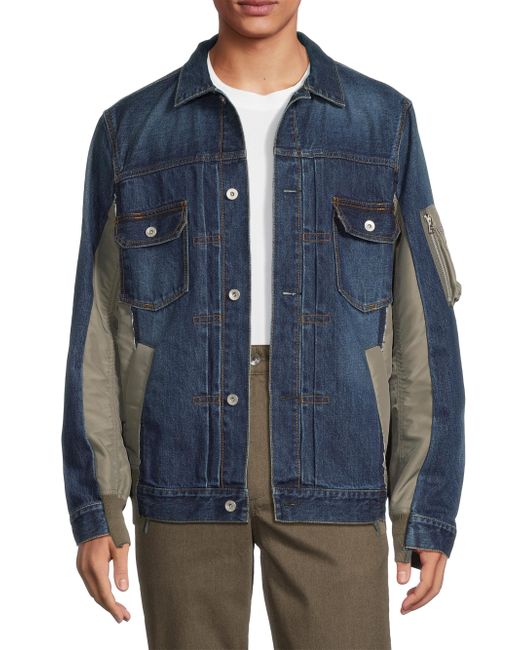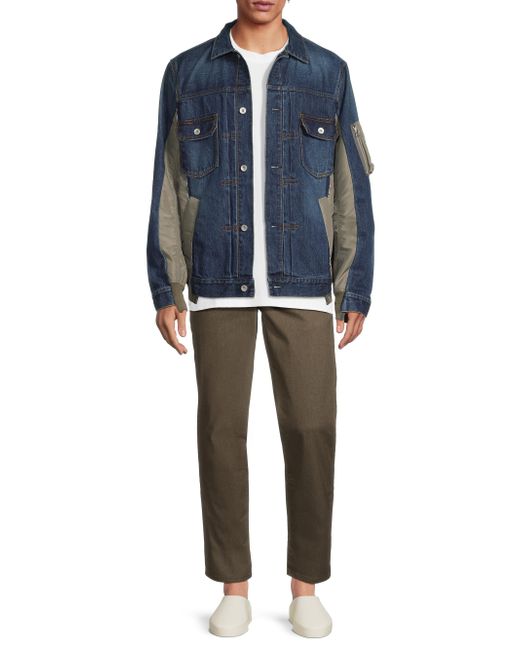 This Sacai denim jacket is contrasted with twill puffer paneling for a mixed-media look. The versatile design features contrast stitching, four pockets, and a button-front closure. Spread collar Long sleeves, one zip pocket Chest button-through flap pockets Side welt pockets Button-front closure 100% cotton Combo 1: 100% polyester Combo 2: 100% nylon Dry clean Made in Japan SIZE & FIT About 28.5'' from shoulder to hem Model measurements: 6'1" tall, 37" chest, 30.5" waist Model is wearing a US size 40. Men Advcd Dsgnr - Advanced Designer Collec > Sacai > Saks Fifth Avenue > Barneys. Sacai. Color: Blue. Size: Small.