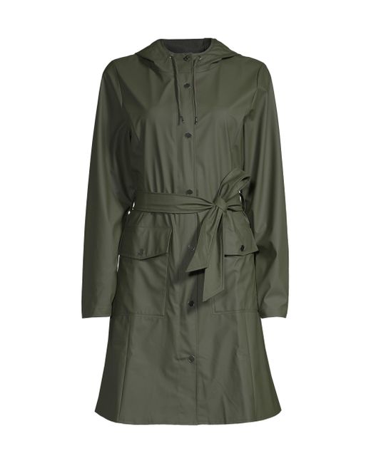 Designed with weather-resistant detailing, this hooded jacket features lightweight construction and a self-tie belt to define the waist. Attached drawstring hood Long sleeves Concealed zip front with snap placket Self-tie belted waist Waist snap flap pockets Polyester Machine wash Imported SIZE & FIT About 38" from shoulder to hem Model measurements: 5'10" tall Model is wearing US size Small. Outerwear And Swimwear - Rain & Quilts > Rains > Saks Fifth Avenue > Barneys. Rains. Color: Green. Size: Large.