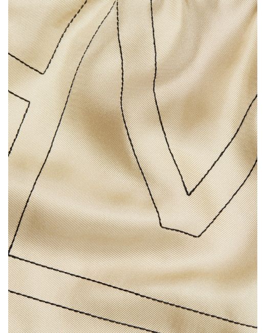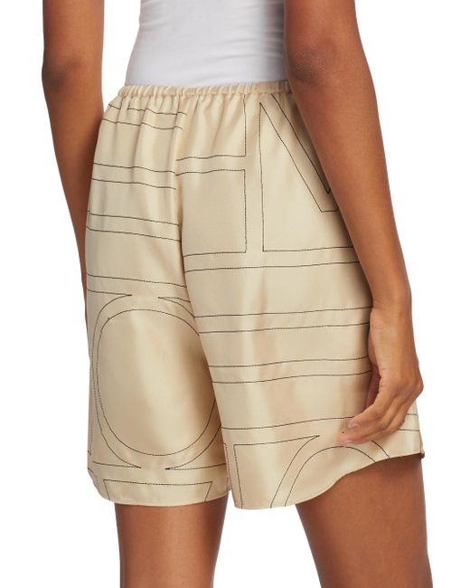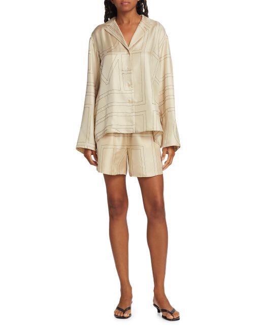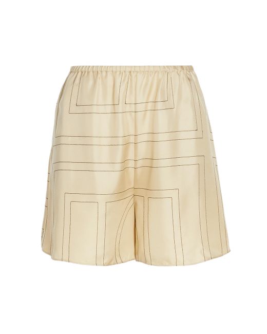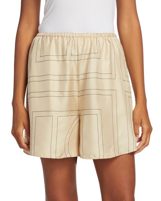 Cut in a wide-leg silhouette, Totême's elasticized silk shorts are defined by a large stitched logo pattern. Elasticized waist Side seam pockets Round hem Pulls on 100% silk Dry clean Imported SIZE & FIT This style is designed for a relaxed fit Rise, about 13" Inseam, about 3" Leg opening, about 28" Model measurements: 5'10" tall Model is wearing a US size 4. Advanced Designer - Designer Emerging Brands > Toteme > Saks Fifth Avenue > Barneys. Toteme. Color: Ivory Monogram. Size: 4.