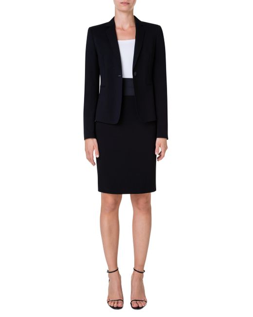 ONLY AT SAKS.COM Sharply tailored blazer in cotton-blend jersey Notch lapels Long sleeves One-button closure Shaping seams Welt pockets Lined About 27" from shoulder to hem Cotton/polyester/viscose/elastane Dry clean Imported Model shown is 5'10" (177cm) wearing US size 4. Please Note: This item runs large. ABOUT THE BRAND Founded in 1922 in St. Gallen, Switzerland, the name Akris was derived from founder Alice-Kriemler Schoch's initials. Akris punto was later launched in 1995 with a relaxed, understated mindset. With a range of contemporary looks including architectural silhouettes, graphic prints and colorblocking, each piece is finished with an athletic edge. Learn more about the Akris Punto gift with purchase. Designer Lifestyle - Akris Punto > Akris Punto > Saks Fifth Avenue > Barneys. Akris punto. Color: Black. Size: 4.