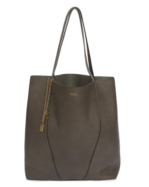 Chloé's Large Spin tote bag is crafted of smooth leather, featuring logo detailing and charm accents. Made in Italy, this spacious bag exemplifies the brand's commitment to quality and style. Two top handles Leather Lining: leather Made in Italy ABOUT THE BRAND In 1952, founder Gaby Aghion established Chloé as an alternative to couture, and to appeal to the aspirations and empowerment of women. The label is now led by Creative Director Gabriela Hearst, who furthers its signature aesthetic of cool, French-girl style. Handbags - Chloe Handbags > Chloé > Saks Fifth Avenue > Barneys. Chloé. Color: Flannel Grey.