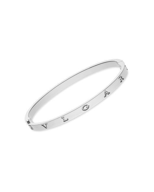 From the B.zero1 Collection. This elegant bangle is crafted of 18K white gold engraved with the label's iconic logo. 18K white gold Push clasp Made in Italy SIZE Small, 5.905'' (15cm) circumference Medium, 6.692'' (17cm) circumference Large, 7.48'' (19cm) circumference ABOUT THE BRAND Founded in Italy in 1884 by Greek silversmith Sotirio Bulgari, BVLGARI has become synonymous with unparalleled craftsmanship and exquisite jewelry. The brand's Roman heritage can be seen in pieces inspired by the city's architecture, artwork and ancient mosaics. Today, the house continues to translate its rich history into opulent designs and fragrances. Fine Jewelry - Bvlgari Watches And Jewe > Bvlgari > Saks Fifth Avenue > Barneys. BVLGARI. Color: White Gold. Size: Medium.