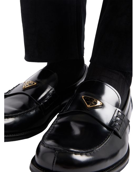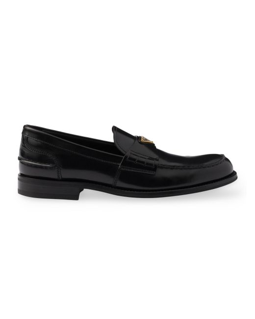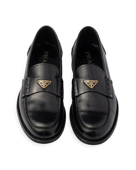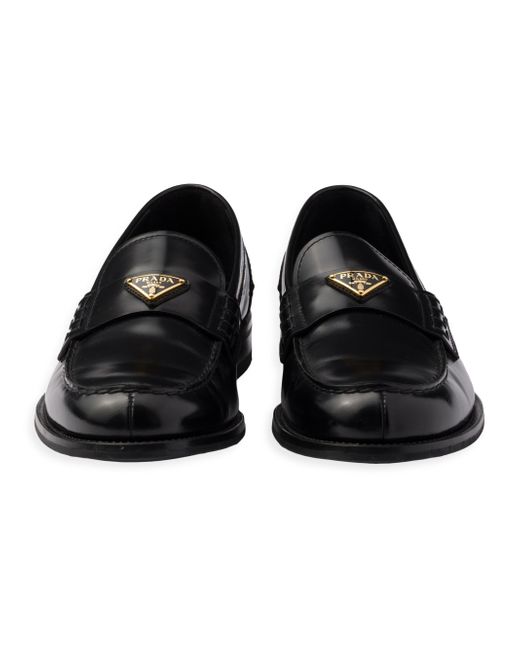 The timeless silhouette of these loafers is elevated by the elegant finish of brushed leather, which adds a touch of sophistication to the classic design. Upper with leather band Enameled metal triangle logo Leather sole with rubber half-sole and heel layer with hot-stamped logo Heel height: 25 mm / 0.9'' Imported 100% Calf Leather. Lsd Rtw - Prada Rtw > Prada > Saks Fifth Avenue > Barneys. Prada. Color: Black. Size: 7.