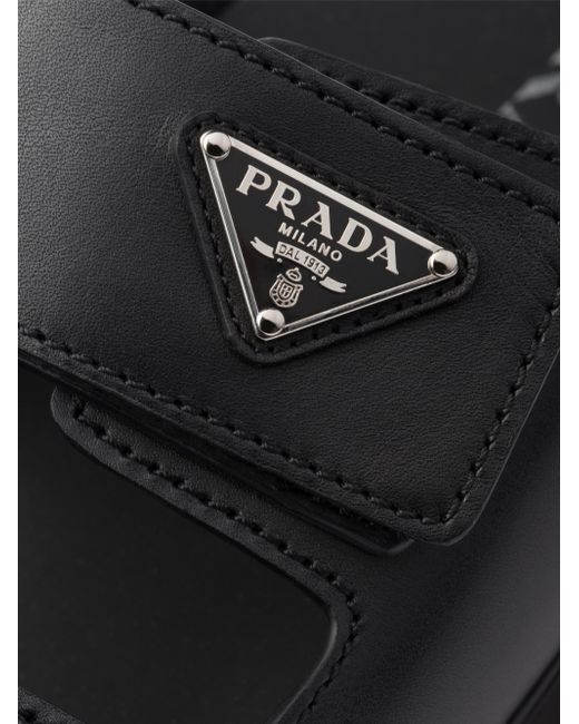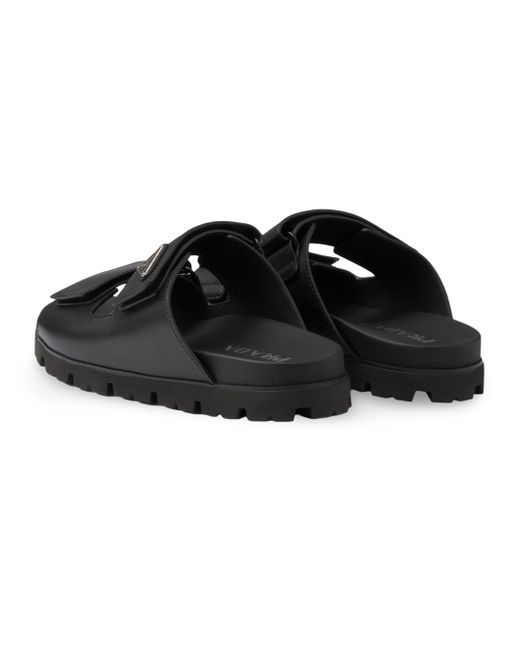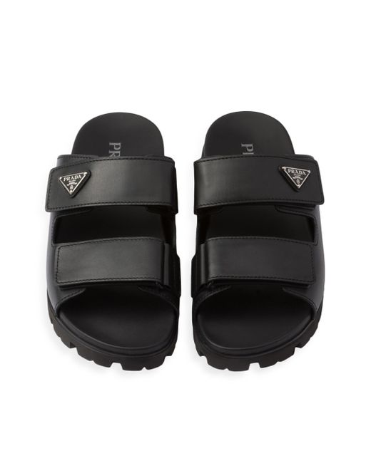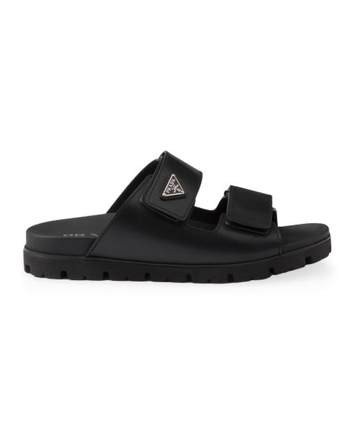 These leather sandals with sporty details are defined by clean, contemporary lines. The footwear with hook-and-loop straps is completed with rubber lug soles, which give it a casual style. The enameled metal triangle logo completes the style with its sleek and iconic signature touch. Strap with hook-and-loop closure Enameled metal triangle logo Rubber lug sole Heel height: 25 mm / 1'' Leather-covered insole 100% Calf leather Imported. Lsd Rtw - Prada Rtw > Prada > Saks Fifth Avenue > Barneys. Prada. Color: Black. Size: 7.