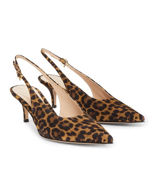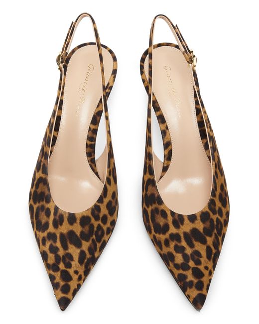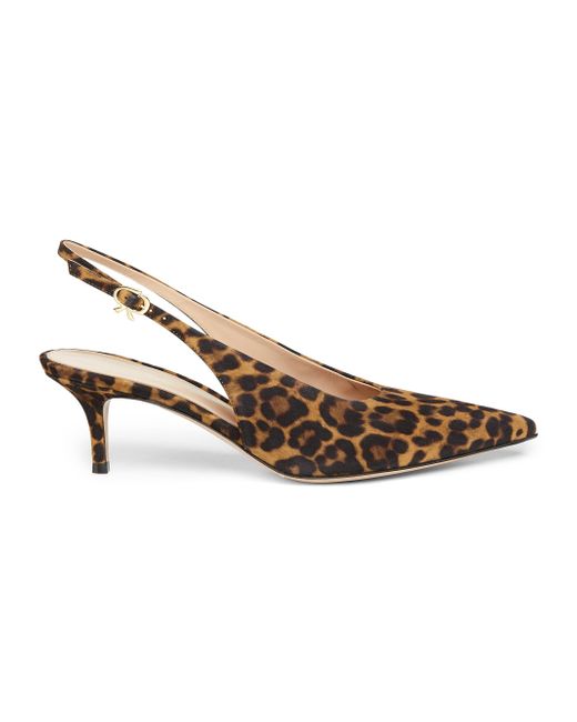 Crafted of suede, these slingback pumps from Gianvito Rossi are designed with a leopard print, pointed toe, and 55mm heel. Point toe Buckle closure Suede upper Acetate lining Leather sole Made in Italy SIZE Heel: about 2.2" (55mm) ABOUT THE BRAND The son of famed Italian shoe designer Sergio Rossi, Gianvito Rossi made his own debut in 2006 at Milan Fashion Week, causing major buzz around his clean, masterfully crafted designs. Today, Rossi continues his devotion to minimalist, comfortable shoes in streamlined shapes, all exquisitely made in Italy. Women's Shoes - Gianvito Rossi Wmn Shoes > Gianvito Rossi > Saks Fifth Avenue > Barneys. Gianvito Rossi. Color: Almond Leopard Print. Size: 5.