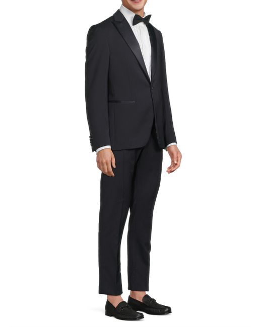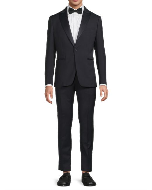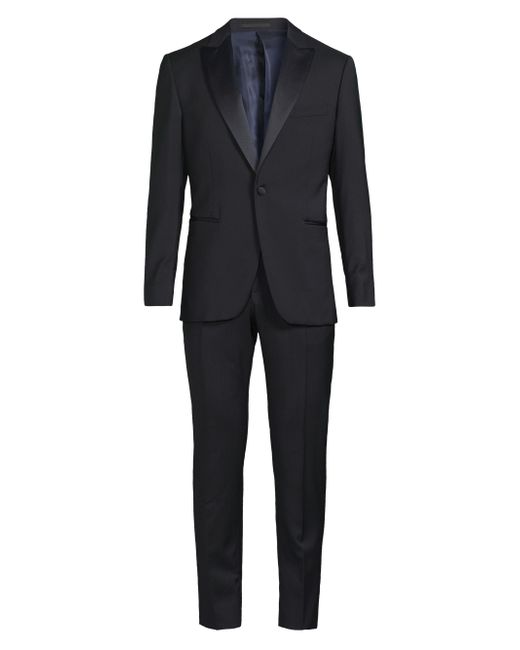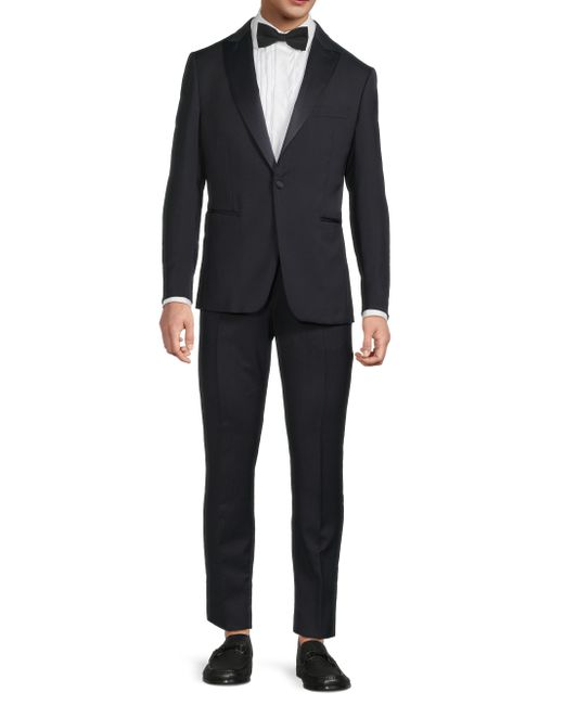 Crafted of wool, this Basic Tuxedo from Pal Zileri is cut for a classic fit. Peak satin lapels and an elegant single-button closure complete the design. 100% wool. Dry clean. Made in Italy/ JACKET Peak lapels Long sleeves, button cuffs Chest and side welt pockets Single-button closure PANTS Belt loops Zip fly SIZE & FIT About 29" from shoulder to hem Rise, about 8" Inseam, about 32.75" Leg opening, about 12.75" Model measurements: 6'2" tall, 40" chest, 31" waist Model is wearing a US size 40R. Men Luxury Coll - Formal Wear > Pal Zileri > Saks Fifth Avenue > Barneys. Pal Zileri. Color: Navy. Size: 36.