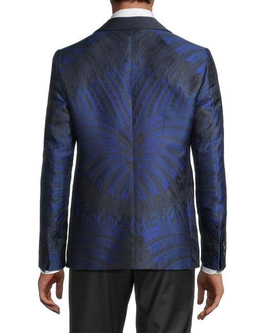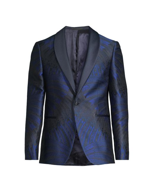 A striking jacquard leaf motif enhances this Pal Zileri silk-blend dinner jacket. Complete with a smooth shawl collar, the sophisticated design fastens with a one-button closure. Shawl collar Long sleeves Chest welt pocket Side besom pockets One-button closure 42% silk/39% polyester/19% acetate Combo: 100% polyester Lining: 100% viscose Dry clean Made in Italy SIZE & FIT About 28.75'' from shoulder to hem Model measurements: 6'2" tall, 40" chest, 31" waist Model is wearing a US size 40R For basic alterations and hemming, book an appointment online at your local Saks Fifth Avenue location. Men Luxury Coll - Formal Wear > Pal Zileri > Saks Fifth Avenue > Barneys. Pal Zileri. Color: Navy Multi. Size: 38.