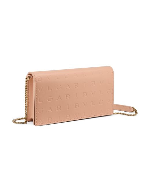 From the BVLGARI BVLGARI Collection. BVLGARI's chain wallet is made in Italy from luxurious leather characterized by the brand's signature allover heat-stamped Infinitum logo pattern. The versatile accessory features a removable chain and leather strap. Removable shoulder strap Exterior: one slip and one zip pocket Interior: two slip pockets and six card slots Flap with magnetic closure Leather Lining: leather Made in Italy SIZE About 7.5"W x 4"H x 1.75"D Removable shoulder strap: about 19" drop ABOUT THE BRAND Founded in Italy in 1884 by Greek silversmith Sotirio Bulgari, BVLGARI has become synonymous with unparalleled craftsmanship and exquisite jewelry. The brand's Roman heritage can be seen in pieces inspired by the city's architecture, artwork and ancient mosaics. Today, the house continues to translate its rich history into opulent designs and fragrances. Handbags - Italian Designers > Bvlgari > Saks Fifth Avenue > Barneys. BVLGARI. Color: Pink.