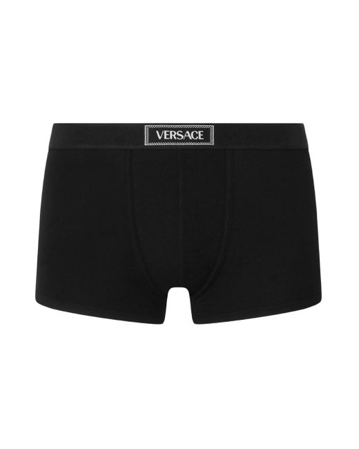 These Versace cotton-blend boxer briefs feature an elasticized waistband with bold logo lettering and a contoured pouch. Elasticized waistband Contoured pouch Pulls on 93% cotton/7% elastane Machine wash Imported SIZE & FIT Model measurements: 6'2" tall, 31" waist Model is wearing a US size 32 ABOUT THE BRAND Founded in 1978, Versace is instantly recognizable by the signature Medusa head logo, chosen by founder Gianni Versace for its Greek symbolism. The Italian label is known for its luxe, bold clothing, sneakers, shoes and accessories-think gilding, oversized logos and punchy prints. Since taking over artistic direction, Gianni's sister Donatella Versace has maintained the brand's strong identity, with a renewed vision to give customers the ultimate freedom to express themselves. Men Accessories - Underwear > Versace > Saks Fifth Avenue > Barneys. Versace. Color: Black. Size: XL.