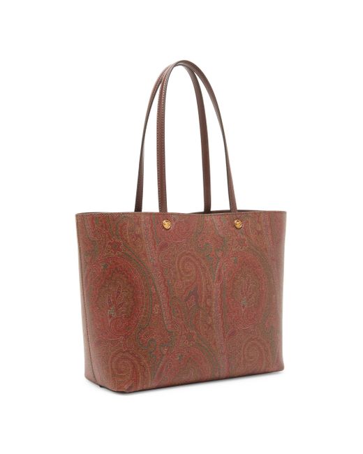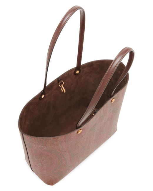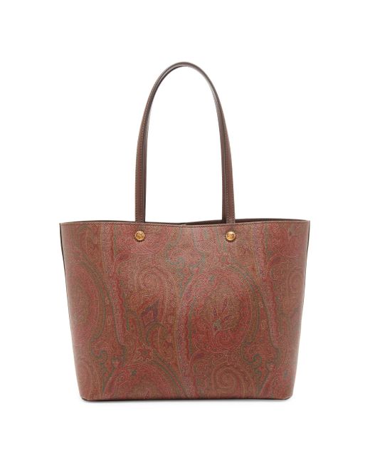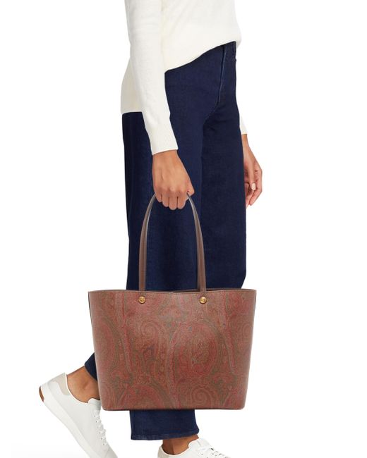 Etro's tote, a testament to the brand's Italian craftsmanship, is designed with the signature paisley motif. This versatile accessory is perfect for everyday use. Two shoulder straps Clasp closure Cotton/synthetic/leather Made in Italy ABOUT THE BRAND The Italian fashion house renowned for its eclectic prints and signature paisley motif has been a family-run business since its inception in 1968. Creative Director Marco de Vincenzo continues the brand's legacy with the rich textiles and patterns still used in its clothing, accessories and home décor. Handbags - Italian Designers > Etro > Saks Fifth Avenue > Barneys. Etro. Color: Brown.