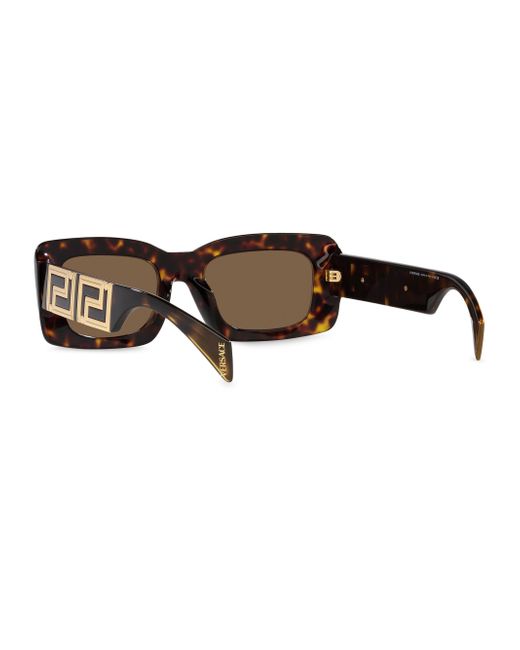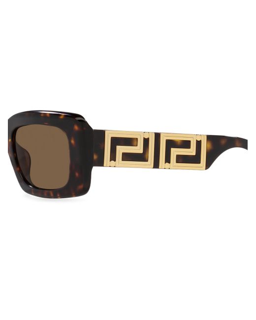 These rectangular sunglasses from Versace are adorned with a goldtone Greca pattern on the arms. 100% UV protection Solid lenses Includes case and cleaning cloth Acetate frames/standard plastic lens Made in Italy SIZE 54mm lens width 21mm bridge width 140mm temple length Please note: Solid lenses. Replacement is optional. ABOUT THE BRAND Founded in 1978, Versace is instantly recognizable by the signature Medusa head logo, chosen by founder Gianni Versace for its Greek symbolism. The Italian label is known for its luxe, bold clothing and accessories-think gilding, oversized logos and punchy prints. Since taking over artistic direction, Gianni's sister Donatella Versace has maintained the brand's strong identity, with a renewed vision to give customers the ultimate freedom to express themselves. Soft Accessories - Sunglasses > Versace > Saks Fifth Avenue > Barneys. Versace. Color: Havana.