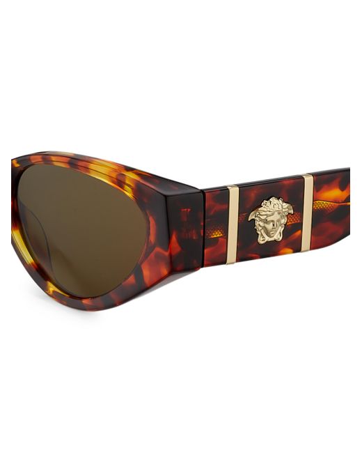 Cut in a striking cat-eye shape, these Versace sunglasses are finished with a Medusa plaque at the temples. UV protection Includes case and cleaning cloth Acetate Made in Italy SIZE 55mm lens width 18mm bridge width 140mm temple length ABOUT THE BRAND Founded in 1978, Versace is instantly recognizable by the signature Medusa head logo, chosen by founder Gianni Versace for its Greek symbolism. The Italian label is known for its luxe, bold clothing and accessories-think gilding, oversized logos and punchy prints. Since taking over artistic direction, Gianni's sister Donatella Versace has maintained the brand's strong identity, with a renewed vision to give customers the ultimate freedom to express themselves. Soft Accessories - Sunglasses > Versace > Saks Fifth Avenue > Barneys. Versace. Color: Dark Brown.