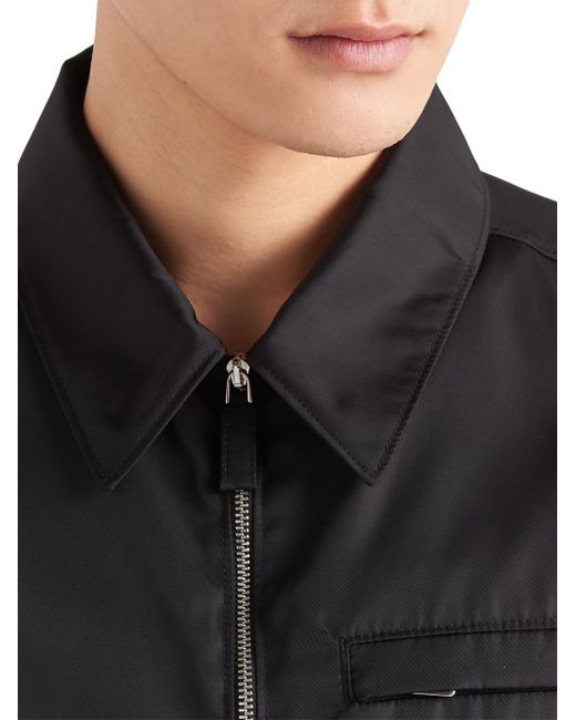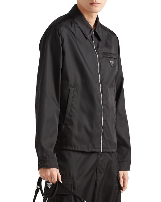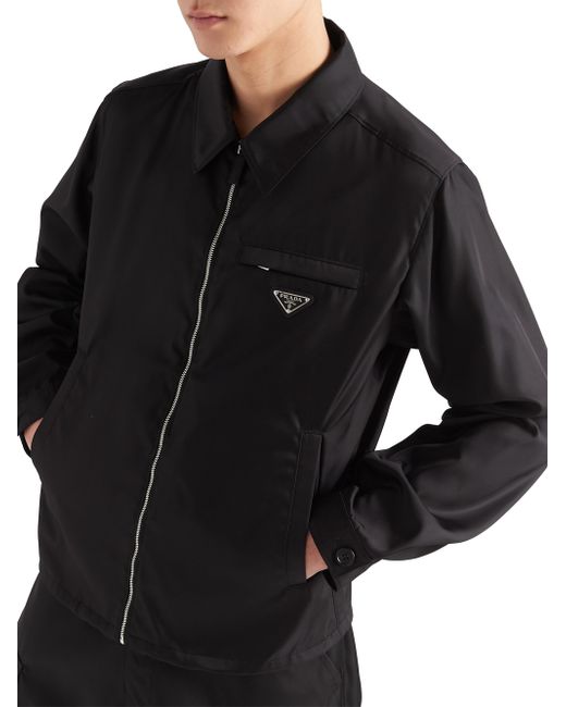 This blouson jacket with a regular fit, shirt collar and straight sleeves has an elasticized drawstring hem that recalls the sportwear world. The design is made of Prada's emblematic and innovative Re-Nylon fabric produced from recycled plastic materials collected in the ocean that can be endlessly regenerated. The distinctive sartorial label of Prada collections Prada accents the garment. Regular fit Shirt collar Straight sleeves Zipper closure Welt pockets Cuff with button closure Regular shoulder Straight hem Elasticized drawstring Unlined Enameled metal triangle logo Imported SIZE & FIT 65.0 H. Lsd Rtw - Prada Rtw > Prada > Saks Fifth Avenue > Barneys. Prada. Color: Black. Size: 38.