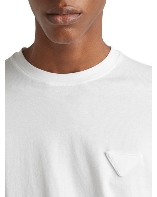 This short-sleeved cotton tee has an oversized fit and ribbed knit crew neck. The style is decorated with the iconic triangle logo on the front. Boxy fit Short sleeves Straight hem Fabric triangle logo Made in Italy SIZE 70.0 H. Lsd Rtw - Prada Rtw > Prada > Saks Fifth Avenue > Barneys. Prada. Color: White. Size: Small.