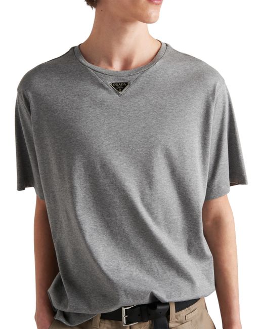 This soft cotton T-shirt has a minimalist silhouette with an oversized fit. The short-sleeved style features the iconic enameled-metal triangle logo. Oversized fit Short sleeves Straight hem Enameled-metal triangle Length: 74 cm, Size: M Cotton Imported. Lsd Rtw - Prada Rtw > Prada > Saks Fifth Avenue > Barneys. Prada. Color: Grey. Size: Small.