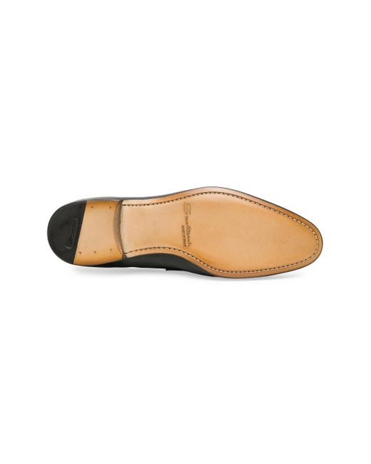 Made of calfskin leather, these penny loafers from Santoni feature Goodyear Bologna craftsmanship. Leather upper Round toe Slips on Leather lining Leather sole Made in Italy This brand fits slightly larger. Consider ordering half a size down. Men's Shoes - Mens Classic Footwear > Santoni > Saks Fifth Avenue > Barneys. Santoni. Color: Black. Size: 7.