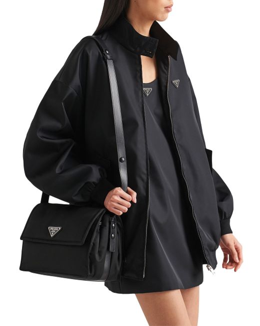 This shoulder bag made of padded Re-Nylon, the distinctive innovative material of the brand, comes with a leather shoulder strap. The accessory completed by a back pocket is illuminated with metal hardware and is decorated with the enameled metal triangle logo that stands out on the flap. Adjustable leather shoulder strap Back zipper pocket Metal hardware Enameled metal triangle logo on the flap Flap closure with magnet Re-Nylon lining with two pockets, including one with zipper Imported SIZE: 11.8'' W x 8.4'' H x 4.7'' L. Lsd Handbags - Prada Handbags Access > Prada > Saks Fifth Avenue > Barneys. Prada. Color: Black.