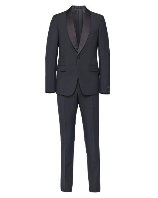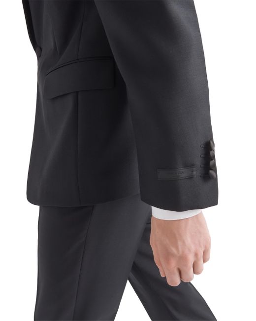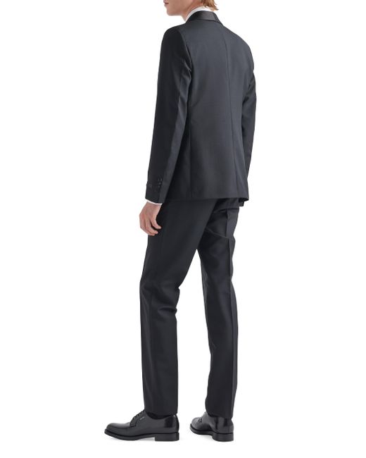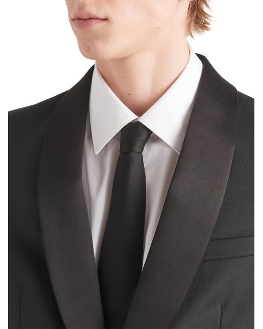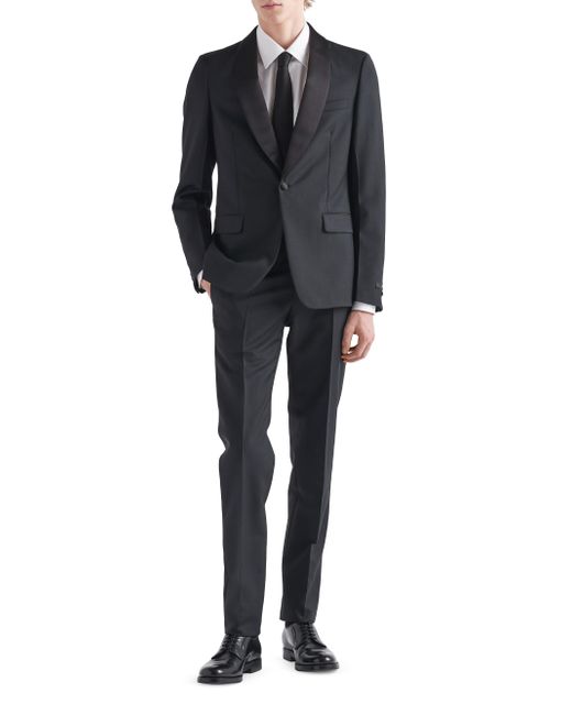 The elegance of this slim-fit single-breasted wool and mohair tuxedo is enhanced by its silk satin lapels and details. The one-button style is decorated with Prada's iconic sartorial label. Extra-slim fit Sartorial tailoring Shawl lapel Jacket with one-button closure Flapped welt pockets Lined Cuffs with four buttons Sartorial label Silk satin tuxedo details Pants with button fly Angled front slash pockets Back welt pockets 18 cm / 7'' Leg width Made in Italy SIZE 72.0 H. Lsd Rtw - Prada Rtw > Prada > Saks Fifth Avenue > Barneys. Prada. Color: Black. Size: 36.