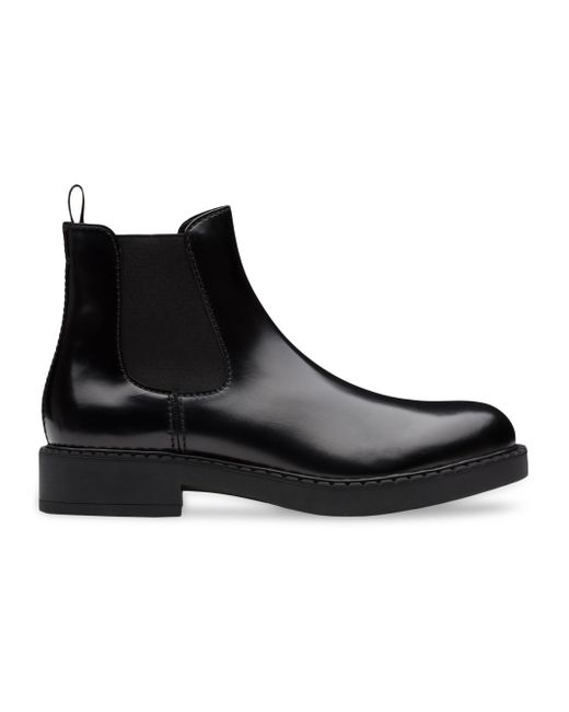 Traditionally used in fine classic footwear, brushed leather has been one of the iconic materials of the brand since the '90s and is used here in a pair of chelsea boots with a light rubber sole. New, contemporary elegance with sleek, clean lines defines Prada footwear for men. Light rubber sole with notched welt Crepe-like half-sole 40 mm heel Leather insole Made in Italy. Lsd Rtw - Prada Rtw > Prada > Saks Fifth Avenue > Barneys. Prada. Color: Black. Size: 10.5.