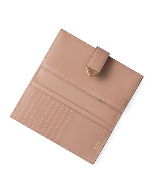 Defined by sophisticated and precious allure, this large wallet comes in a mix of details in smooth and saffiano leather, an iconic Prada material with a crosshatch texture. Characterized by its minimalist design and equipped with several compartments and pockets, the accessory features the iconic enameled triangle logo of the brand. Snap closure Enameled metal triangle logo One bill compartment Nine card slots Three internal pockets Internal coin compartment with zipper Moiré and leather lining Imported SIZE: 3.5'' W x 7'' H. Lsd Handbags - Prada Handbags Access > Prada > Saks Fifth Avenue > Barneys. Prada. Color: Light Pink.