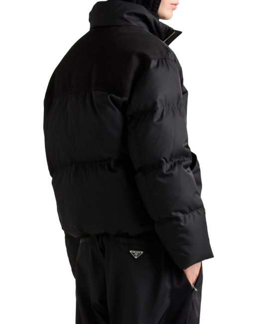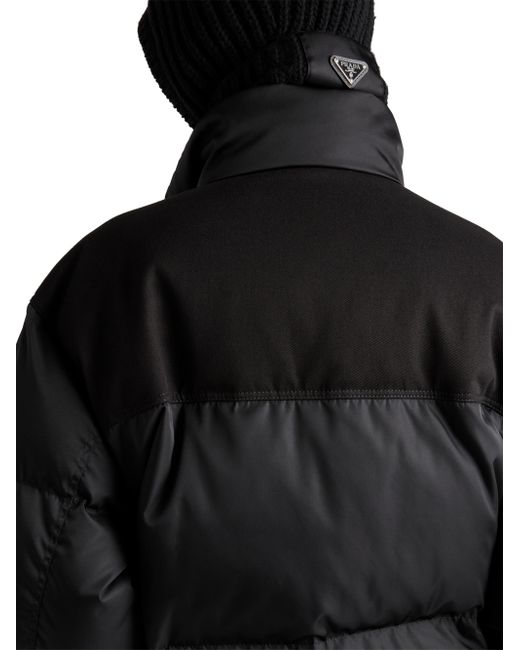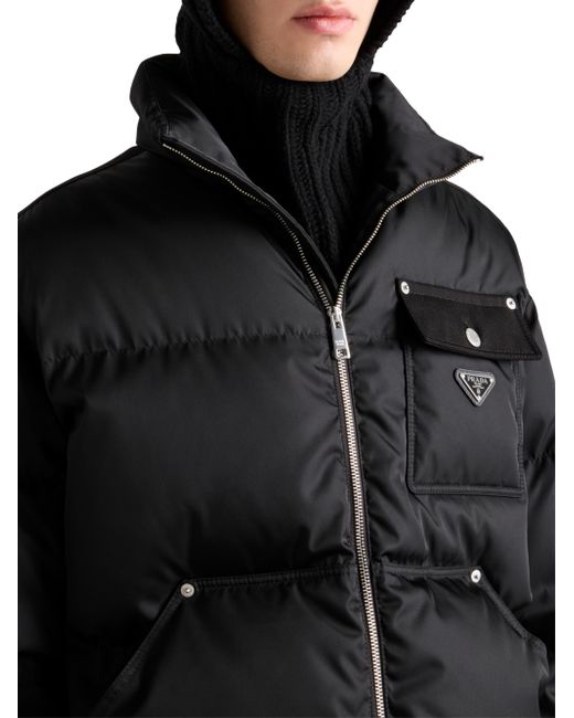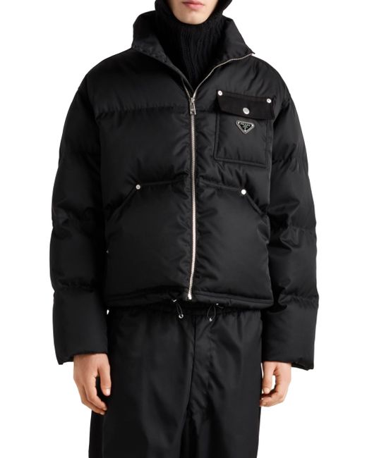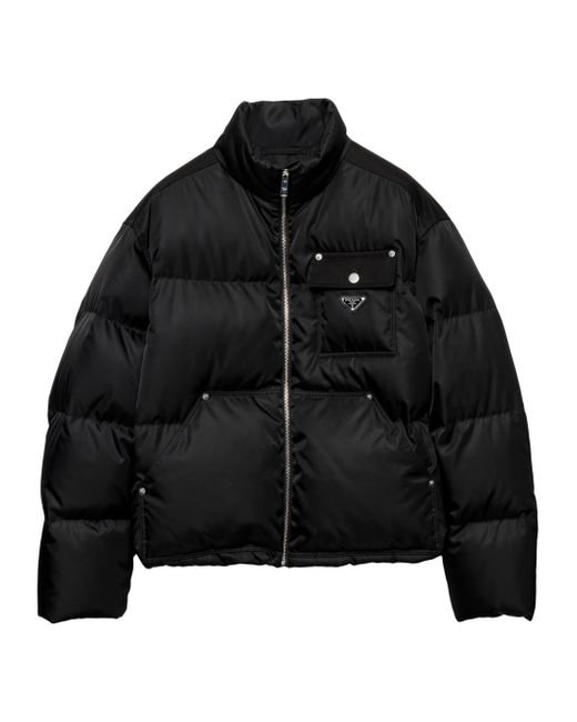 This down jacket with enveloping volumes and a sporty, functional design is made of re-nylon. The innovative fabric made of regenerated nylon enhances the contemporary and pragmatic character of the style, completed with warm goose down padding and enriched by the distinctive signature touch of the enameled metal triangle logo. Oversized fit Stand-up collar Straight sleeve Zipper closure Pouch pockets Straight cuff Wide shoulder Straight hem Elasticized drawstring Recycled fabric lining and goose down padding Enameled metal triangle logo on the front 100% Recycled Polyamide - 100% Solvent free Resin PU Imported. Lsd Rtw - Prada Rtw > Prada > Saks Fifth Avenue > Barneys. Prada. Color: Black. Size: XS.