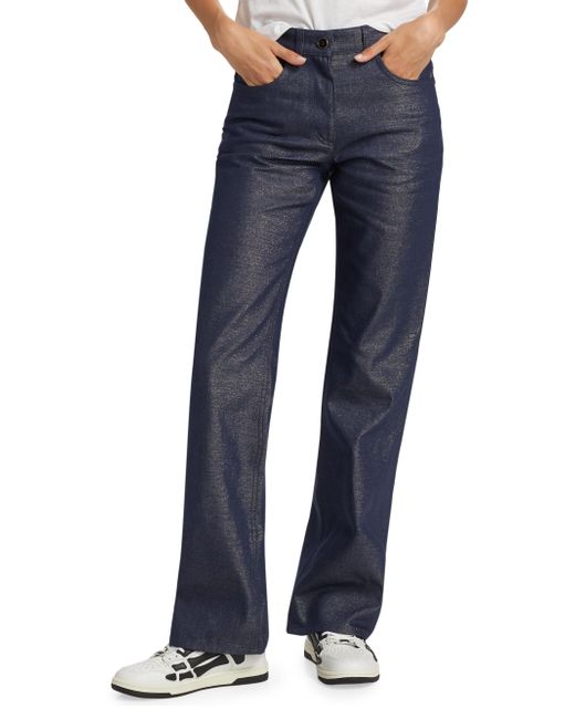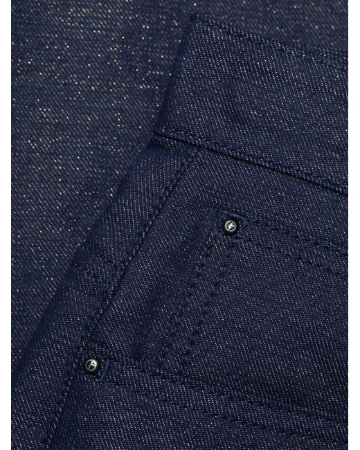Giorgio Armani's denim pants feature a baggy tapered leg. This high-rise style is complete with five-pocket styling and a shimmering finish. Belt loops Five-pocket style Zip-fly, button closure 69% cotton/26% viscose/3% metallic fibers/2% polyamide Dry clean Made in Italy SIZE & FIT Rise: about 10" Inseam: about 33" Model measurements: 5'10" tall Model is wearing a US size 4 ABOUT THE BRAND Since launching his self-named fashion empire in 1975, Milanese designer Giorgio Armani has both revolutionized women's and men's fashion, and the fashion industry writ large. His now signature silhouettes forged new directions at the time, with more natural fits and neutral colors. To this day, the Armani name is synonymous with an effortless and approachable Italian aesthetic that can be found in its expertly tailored clothing, accessories and beauty collections. Advanced European - B30 Consignment > Giorgio Armani > Saks Fifth Avenue > Barneys. Giorgio Armani. Color: Graphite. Size: 4.