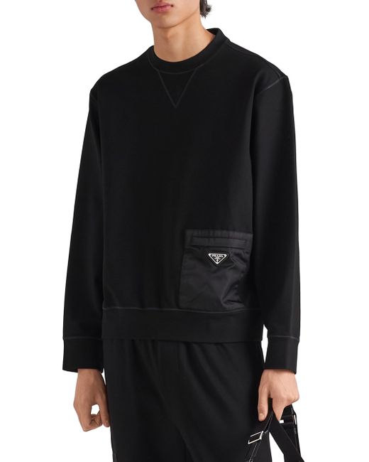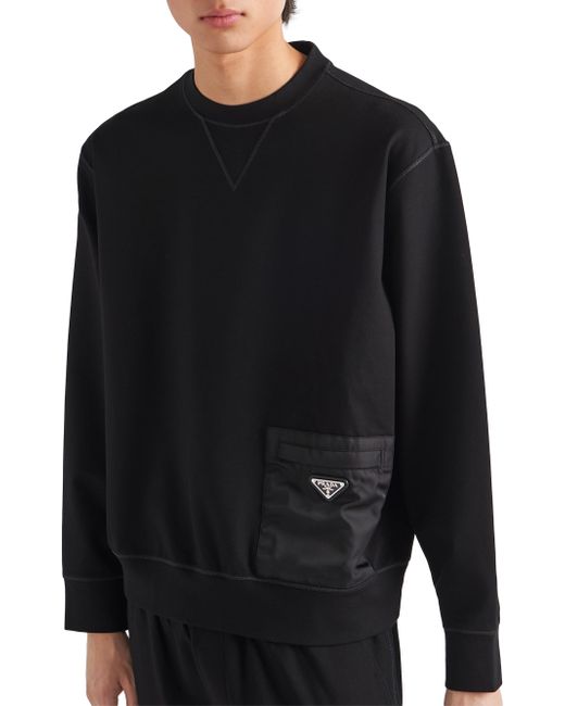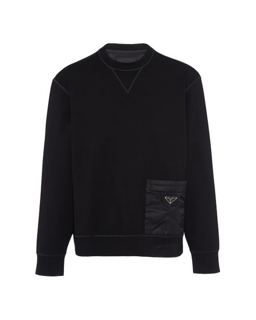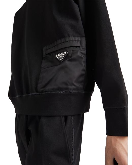 This technical cotton sweatshirt is defined by its contrasting materials in the same shade. A geometric nylon pocket with zipper on the front accents the design decorated with the enameled metal triangle logo. Boxy fit Long sleeves Fleece hem Enameled metal triangle logo Length: 68 cm Size: M Front nylon zipper pocket Imported. Lsd Rtw - Prada Rtw > Prada > Saks Fifth Avenue > Barneys. Prada. Color: Black. Size: Medium.