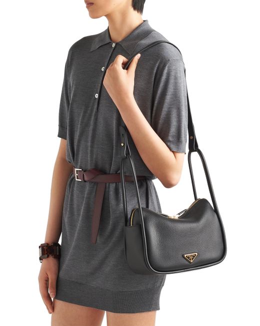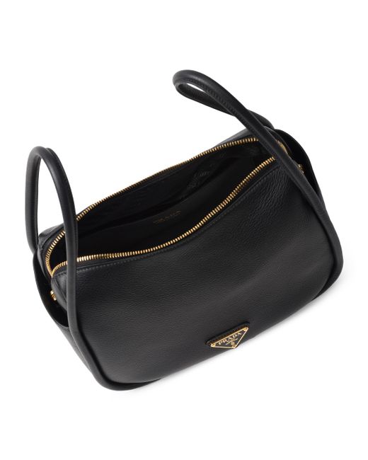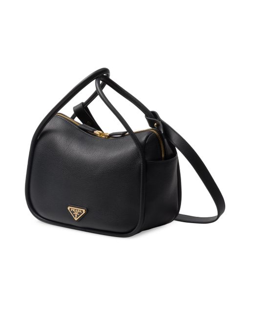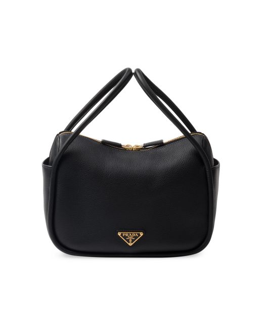 A contemporary design with a casual attitude defines this handbag with refined details illuminated by metal hardware. The compact and versatile style features clean, minimalist lines emphasized by the buttery touch of soft grain leather. The accessory, an expression of exceptional artisanal know-how, is decorated with the enameled metal triangle logo. Open side pockets Metal hardware Enameled metal triangle logo on the front Zipper closure Logo - print nylon lining with patch pocket Imported SIZE 25 W x 18 H x 10.5 L cm / 9.8 W x 7 H x 4.1 L in. Double leather handles, drop 13'' Removable leather shoulder strap, length 75 cm / 29''. Lsd Handbags - Prada Handbags Access > Prada > Saks Fifth Avenue > Barneys. Prada. Color: Black.