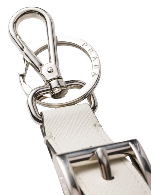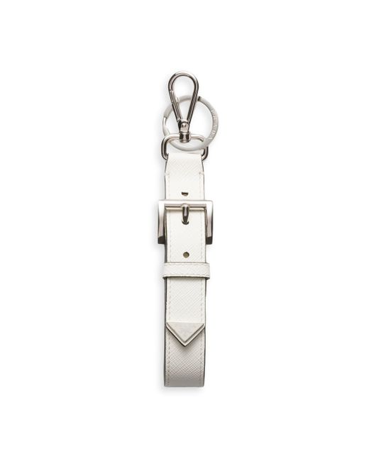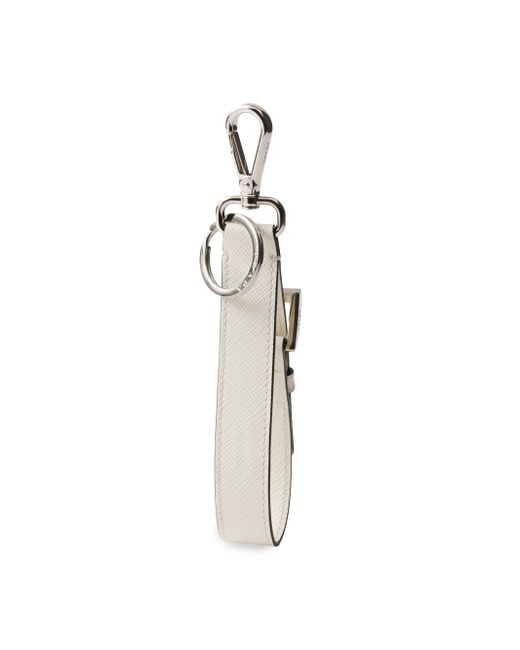 The iconic geometric shape of the triangle logo embellishes this refined leather key ring with a sleek, sophisticated design. With snap hook and split ring Enameled metal triangle logo 100% steel, 100% calf leather Imported SIZE 2.0'' W x 13.5'' H. Lsd Rtw - Prada Rtw > Prada > Saks Fifth Avenue > Barneys. Prada. Color: White.