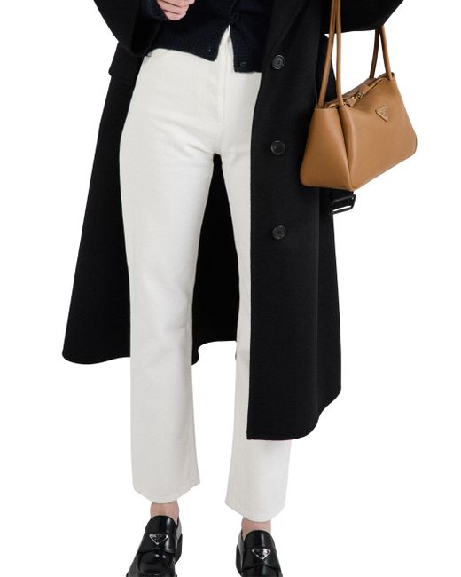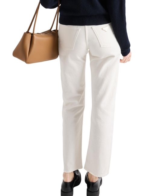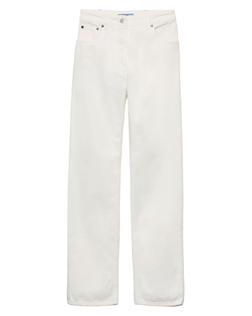 These denim jeans have a classic five-pocket silhouette defined by the high-rise waist and straight leg. The style with contemporary allure is decorated with the enameled metal triangle logo. Garment-dyed treatment Classic fit High-rise waist Hem width: 19.5 cm, Size:25 Button fly Matching stitching Rounded front pockets with coin pocket Patch pockets on the back Total length: 108 cm, Size: 25 Triangle logo Imported 100% Cotton. Lsd Rtw - Prada Rtw > Prada > Saks Fifth Avenue > Barneys. Prada. Color: White. Size: 25.