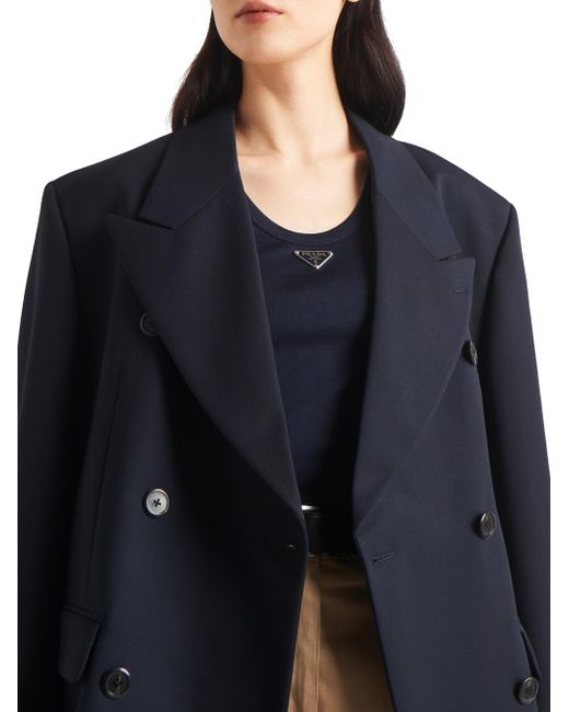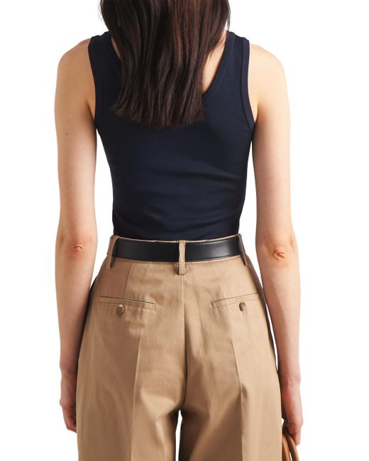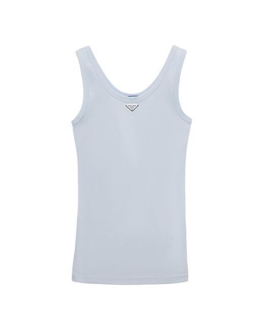 This ribbed knit cotton top is characterized by its skinny fit and embellished with the enameled metal triangle logo. Skinny fit Scoop neck Enameled metal triangle logo Cotton Imported. Lsd Rtw - Prada Rtw > Prada > Saks Fifth Avenue > Barneys. Prada. Color: Blue. Size: 0.